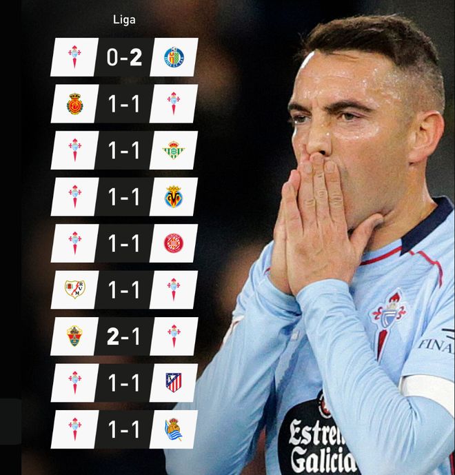 平局大师!本赛季9轮联赛7场1-1,塞尔塔创西甲记录